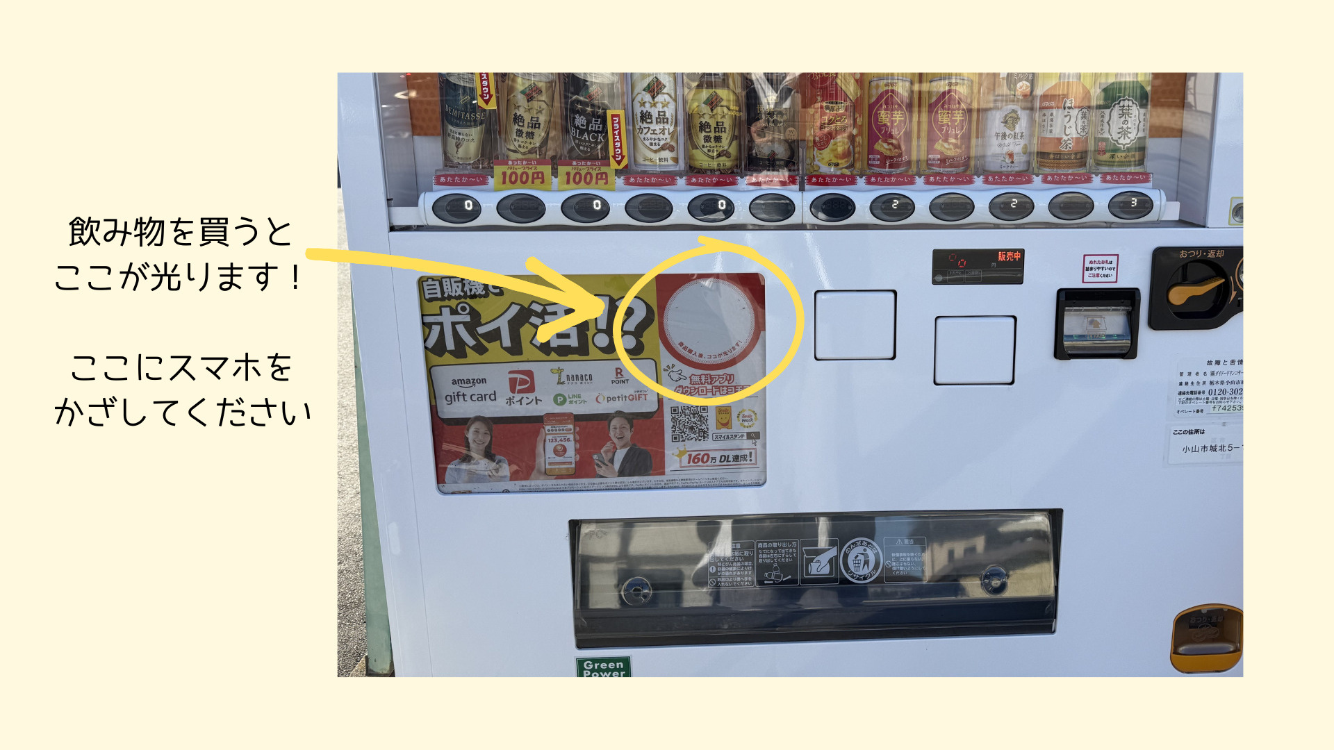 自販機で飲み物を買う前に、スマホを準備しておくことをオススメします。
